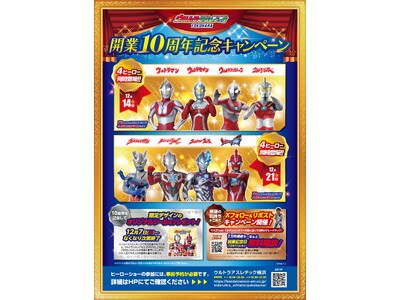 12月7日(日)から『祝!ウルトラアスレチック横浜 開業10周年記念キャンペーン』開始! ウルトラヒーロー4体が登場する特別ステージを開催&記念シールもプレゼント!