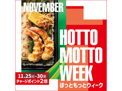 11.25(火)~11.30(日)の期間開催 株式会社プレナスは、持ち帰り弁当の「Hotto Motto (ほっともっと)」を、2025年10月末現在、2,426店舗展開しております。「ほっと...