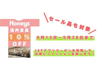 【JAF福島】秋のトレンドをお得に!JAFアプリクーポンでHoneys 店内全品10%OFF