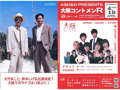 近鉄アート館の新企画「東京お笑い事務所ライブ」4月18(土)ASH&D「大阪コントメンR」お笑い賞レース王者 阿佐ヶ谷姉妹・ラブレターズに加え大阪ライブは13年ぶり!大竹まこと・斉木しげる出演決定!