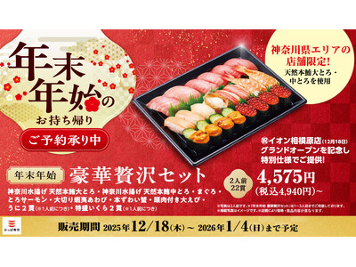 「かっぱ寿司 イオン相模原店」12/18(木)オープン記念!神奈川水揚げの天然本鮪を使った特別仕様のお持ち帰りメニュー『年末年始 豪華贅沢セット』で「大とろ」「中とろ」を贅沢に堪能!