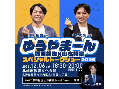 郡司裕也氏と山本拓実氏によるスペシャルトークイベント「ゆうやまーん 郡司裕也×山本拓実 スペシャルトークショー2025」が、2025年12月6日(土)に札幌市教育文化会館 大ホールにて開催され...