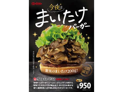 あまりの美味しさで夜食べるごちそうのようなバーガーが、今年も期間限定で復活!!12月19日(金)販売スタート!「今夜は まいたけバーガー」 まいたけ好きにはたまらない!まいたけ200グラムを大...
