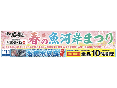 魚の北辰、全店共通「春の魚河岸祭り」を開催!魚の魅力を五感で楽しむ水族館のような演出の「お魚水族館(R)️」も4月11日に開催!対面売場の魚介類は当日限り全品10%引き