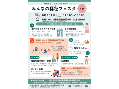 ~福祉まるごと、みんなに知ってほしい!初の寸劇や手話教室も~ 舞鶴市は、令和7年11月8日(土)に舞鶴YMCA国際福祉専門学校にて「みんなの福祉フェスタ2025」を開催します。 福祉を身近に感...