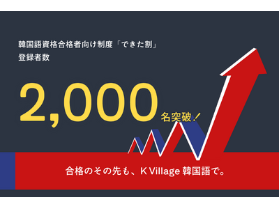 【韓国語ならK Village】韓国語資格合格者を支援する月謝割引制度「できた割」登録者数2,000名突破