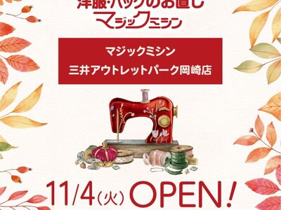 マジックミシン三井アウトレットパーク岡崎店が11月4日(火)オープン! 洋服バッグのお直しを行う「マジックミシン」、靴バッグの修理を行う「リアット!」など全国に668 店舗(2025年2月末...