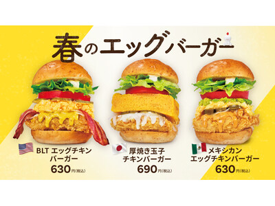 【bb.q オリーブチキン】本格韓国チキンブランドがお届けする、春のエッグバーガー新登場!たまごの美味しさ広がる、3種のチキンバーガーをご用意