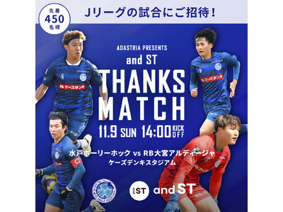 アンドエスティHDが2025年11月9日(日)に冠協賛試合「ADASTRIA presents and STサンクスマッチ 水戸ホーリーホックvsRB大宮アルディージャ」を開催