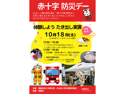 もしもに備える!防災減災 近年、自然災害が頻発し、全国各地で自然災害が発生しています。 もしも!に備える防災減災"誰ひとり取り残さない"、今年も赤十字防災デーを開催します! 日時 令和7年10...
