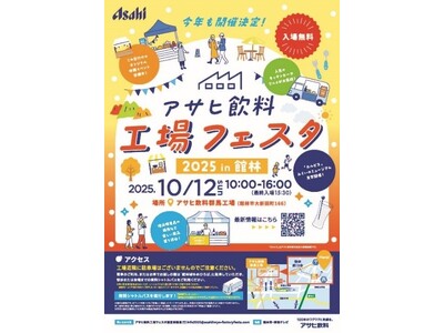 アサヒ飲料株式会社(本社 東京、社長 米女太一)は10月12日、群馬工場で「アサヒ飲料 工場フェスタ」を開催します。地域共創の拠点として工場を地域の皆さまに開放し、さまざまな体験コンテンツを通...