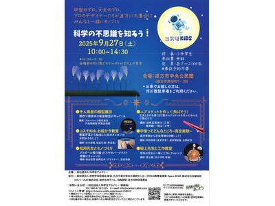 見て、触れて、作って学べる宇宙イベント 子どもたちの科学への興味を育み、宇宙の魅力を五感で体験できる「科学の不思議を知ろう!~コスモKIDS~」 を以下のとおり開催します。 今回、宇宙のプロ、...