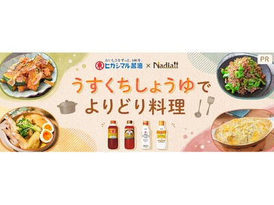 ~特別企画ページ「うすくちしょうゆでよりどり料理」にて、アレンジレシピを発信~ Nadia株式会社(東京都港区/代表取締役社長 葛城嘉紀 以下「Nadia」)とヒガシマル醤油株式会社(兵庫県/...
