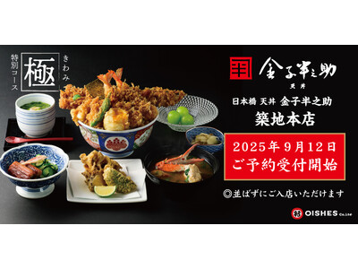 「江戸前天丼」の美味しさが際立つ、計7品の豪華な予約限定コースメニューを発売! 人気飲食店のつけ麺「つじ田」や、「中華そば専門 田中そば店」などをグループで運営する、オイシーズ株式会社(所在地...