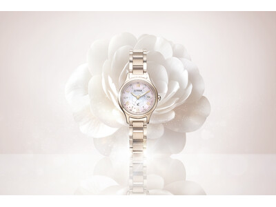 『シチズン クロスシー』満開のカメリアを白蝶貝文字板に表現した限定モデル