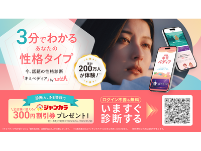 新規ダウンロード数No.1マッチングアプリ「with」、累計200万人以上が体験した「超性格分析」等を誰でも体験可能に! 新サービス「キミペディア」提供開始