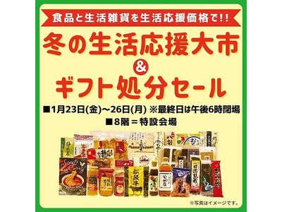 半期に一度の「ギフト処分セール」開催!食品生活雑貨を生活応援価格でご提供! 西武所沢S.C.では、1月23日(金)から1月26日(月)までの4日間、「冬の生活応援大市&ギフト処分セール...