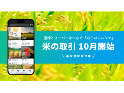 みらいマルシェ株式会社(本社:東京都、代表取締役:井口 大輔)は、当社の運営する生鮮品流通プラットフォーム「みらいマルシェ」において、2025年10月より新たに米の取り扱いを開始します。 当社...