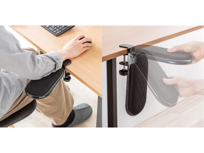 工具の必要なく簡単にデスクに取り付けられるアームレスト!左右180°と90°に折りたためることができる サンワサプライ株式会社(本社:岡山市北区田町1101、 代表取締役社長 山田 和範)が運...