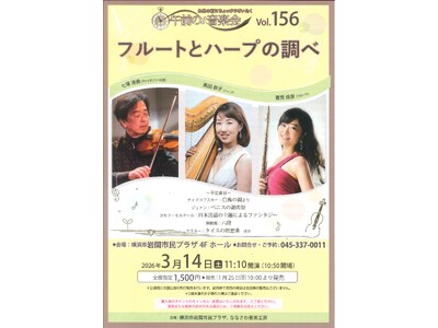お昼の前にちょっぴりぜいたく、「素敵な音楽」でお楽しみください! クラシックの曲を分かりやすくトークを交えてお届けするコンサート。今回は憧れの楽器、ハープとフルートです。 今、コンサートではい...