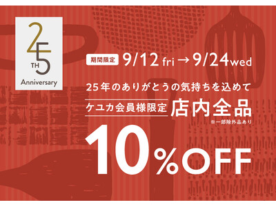 KEYUCA(ケユカ) 25周年記念フェア開催!店内全品10%OFFキャンペーン実施