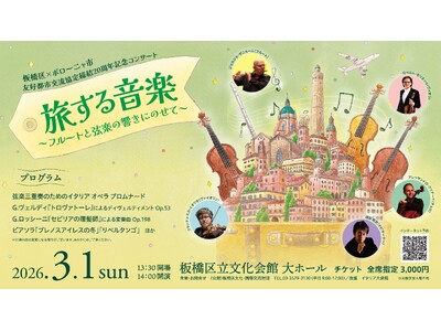 3/1(日)開催:板橋区×ボローニャ市 友好都市交流協定締結20周年記念コンサート『旅する音楽~フルートと弦楽の響きにのせて~』 板橋区立文化会館では、板橋区とイタリアボローニャ市の友好都市交...