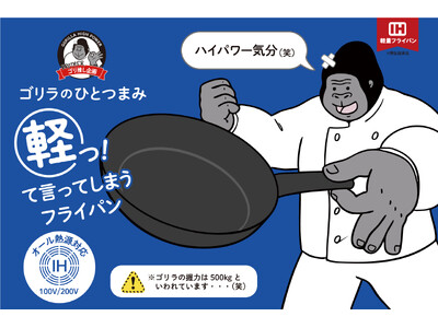 ゴリラのようなハイパワー気分を味わえる?26cmでわずか475gの軽量フライパン「ゴリラのひとつまみ オール熱源タイプ」をラインアップに追加して発売