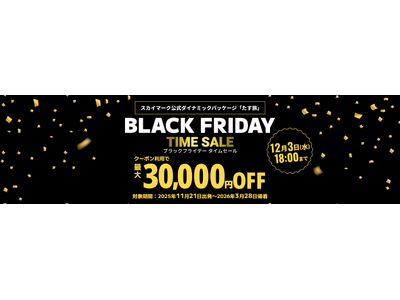 【最大30,000円OFF♪BLACK FRIDAY TIME SALE】スカイマーク公式ダイナミックパッケージ「たす旅」で最大3万円OFFクーポンを配布!年末年始・冬休みなど人気の日程は早い者勝ち!