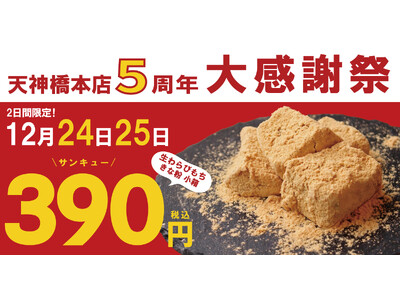 とろり天使のわらびもち 天神橋本店、5周年の感謝を"390円"に込めて!12月24・25日の2日間限定で人気商品を特別価格で販売