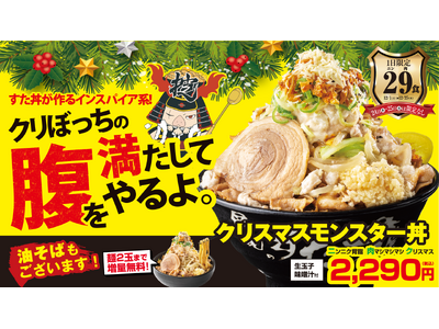 当日完売店舗も続出!総カロリー約2,200kcalの思いがつまった『クリスマスモンスター丼』!前年比127%で、SNSには「売り切れていた」投稿も!24・25日は"販売制限解除"を全国一斉実施へ!