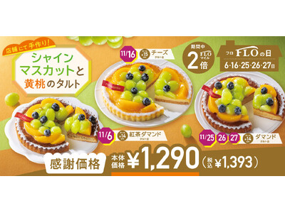 【毎月5日間は"FLOの日"】11月FLOの日限定「シャインマスカットと黄桃のタルト」が登場
