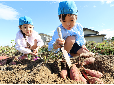 高槻市の園児が秋の味覚サツマイモ掘り体験