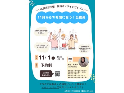 【TAC公務員】「11月からでも間に合う!公務員」を11/1(土)にオンラインで配信!