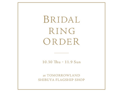 トゥモローランド 渋谷本店では、人気ジュエリーブランドが一堂に集う『ブライダルリングオーダー』を10月30日(木)~11月9日(日)に開催します。 一生をともにする、特別なリングを選ぶ時間を。...