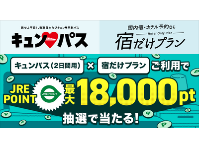 キュン(ハート)パス(2日間用)と宿泊施設のご利用で、JRE POINT最大18,000ポイントが当たるキャンペーンを実施中!さらにキュン(ハート)パス利用におすすめ!八戸や新青森駅発着などの...