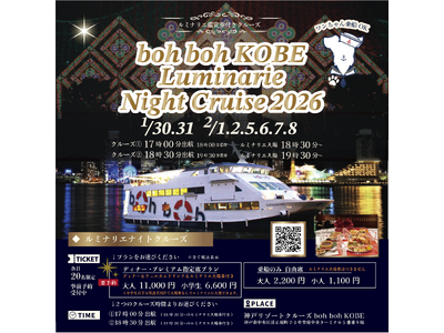 「boh boh KOBE ルミナリエNight Cruise 2026」開催決定!船上から神戸ルミナリエを眺める贅沢で特別な感動体験を♪