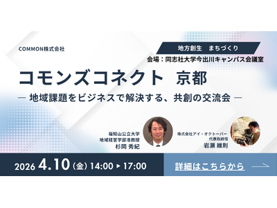 地域課題をビジネスと共創で前に進める交流会。京都での初開催にあたり、自治体企業教育機関地域プレイヤーの参加を募集します。 COMMON株式会社(本社:京都市、代表取締役:増田勇樹)は、2026...