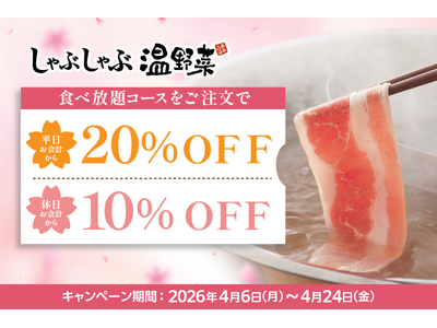 【しゃぶしゃぶ温野菜】食べ放題が平日「20%OFF」・休日「10%OFF」の新生活応援キャンペーン実施 ~さらに!小学生「半額」・小学生未満「無料」・60歳以上「500円引き」~