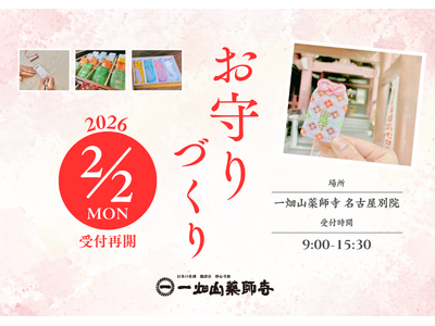 開始から1ヶ月足らずで約1,200体のお守りをお分けし、受付を一時休止していた「お守りづくり体験」が、2月2日より再始動! 一畑山薬師寺は、2026年2月2日(月)より、名古屋別院にて「お守り...