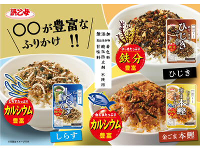 20年続くロングセラーふりかけが進化。鉄分・カルシウムを効率よく補いながら、"素材本来の味わいがパワーアップしたふりかけ3種を2月中旬より順次発売