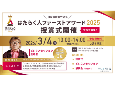 <参加費無料>「はたらく人ファーストアワード2025」授賞式参加者募集!審査員・受賞企業セッション、懇親会を通じた「HR関係者の交流の場」を提供