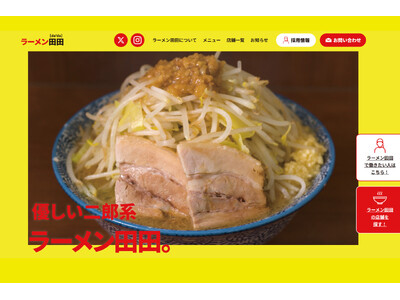 株式会社AZism(本社:東京都立川市、代表取締役会長:和田敏典)は、「ラーメン田田」の公式ホームページを公開しました。"優しい二郎系ラーメン"をコンセプトに、商品やこだわりを分かりやすく発信...