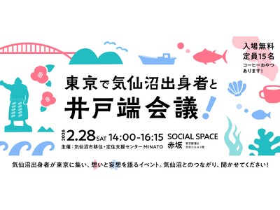 「東京で気仙沼出身者と井戸端会議!」|"ふるさと気仙沼"を語る午後 気仙沼市移住定住支援センターMINATO(運営:一般社団法人まるオフィス)は、2026年2月28日(土)、東京都赤坂のイベン...