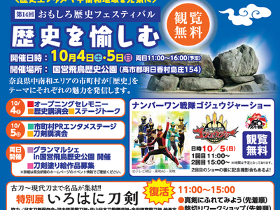 【飲食・物販ブースの出店者を募集中!】「歴史を愉しむ・第14回おもしろ歴史フェスティバル」内のEXPOエリア/10月4・5日に奈良県明日香村の「国営飛鳥歴史公園」で開催