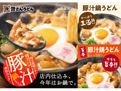 「資さんうどん」冬の定番、今年も登場!店内仕込みの「豚汁」が「豚汁鍋うどん」になって1/15(木)~期間限定で販売!「柚子胡椒」、「旨辛みそ」の味変で、最後の一口まで楽しめる熱々の一杯をご堪能下さい!