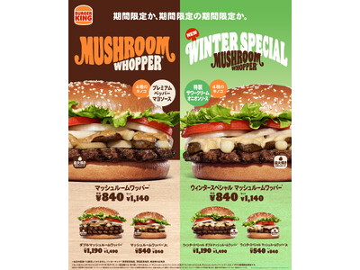 バーガーキング(R)の大人気期間限定商品に冬の新作!「ウィンタースペシャル マッシュルームワッパー(R)」新発売!まろやかなサワークリームを使用した「特製サワークリームオニオンソース」が4種のきのこと相性抜群
