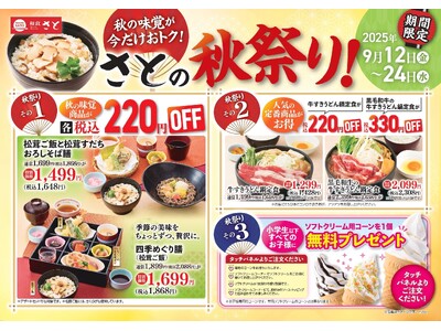 【和食さと】9/12~秋の味覚が今だけお得の「さとの秋祭り」を開催!