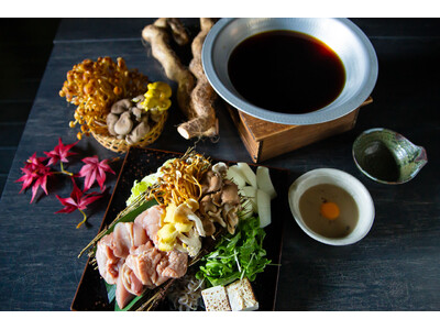 淡路島のブランド鶏と三種のきのこで秋のすき焼き。自然薯たまごにつけて召し上がれ。神戸三宮「黒十 神戸本店」で9月16日(火)より。