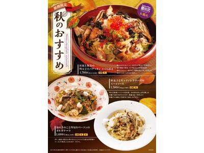 スパゲッティ専門店「壁の穴」では"秋のおいしさ"をたっぷり添えたオリジナルメニュー3種類を9月 17日(水)より期間限定で販売いたします。さっぱりした味わいが特徴の「秋鮭と舞茸の明太子スパゲッ...