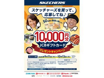 「JCBギフトカード」が50名様に当たる!SKECHERSキャンペーンをシュープラザ・東京靴流通センター・公式オンラインショップ「kutsu.com」などで9月11日から開催!